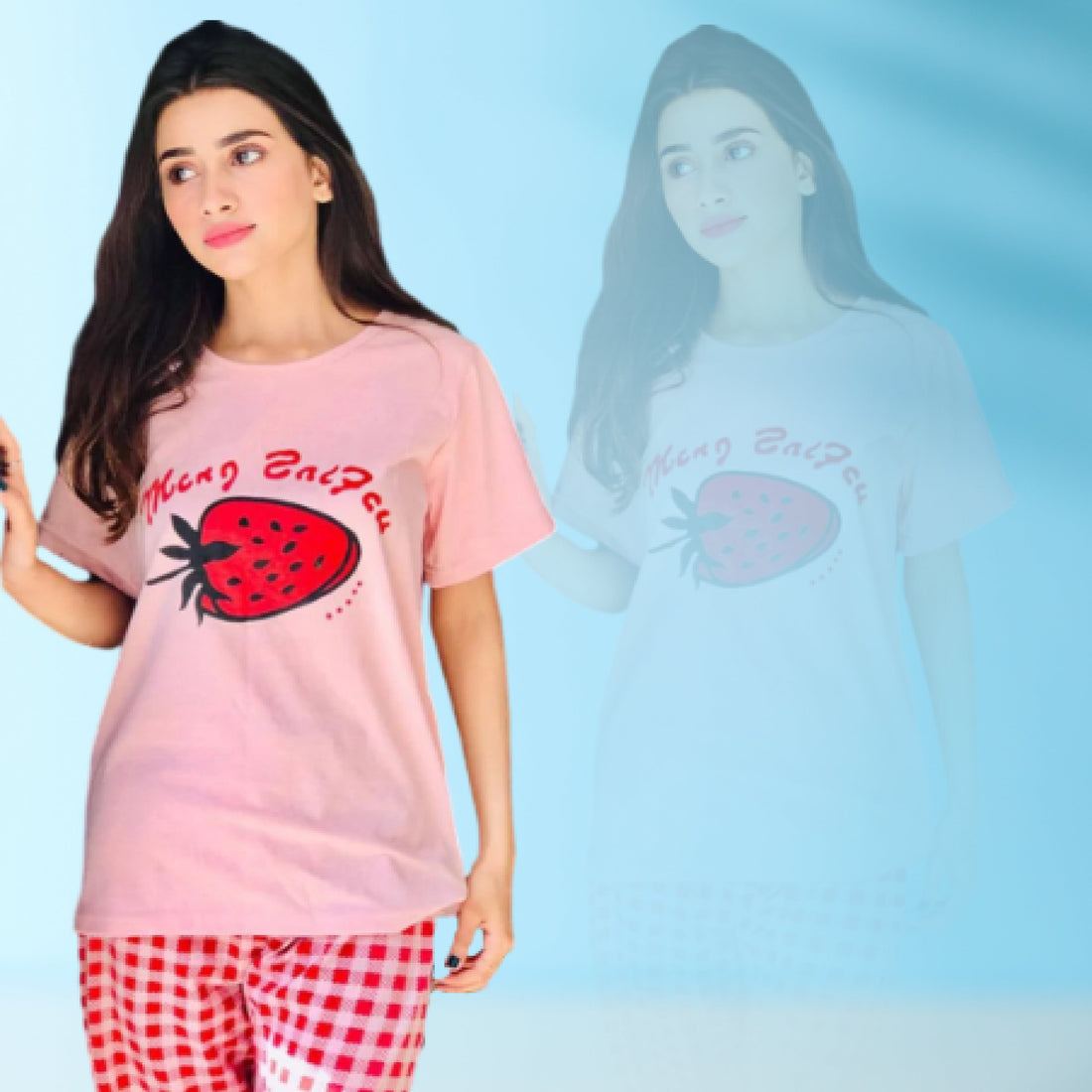 Strawberry Girl Pajama Set Night Suits for Women very attractive and trendy design Blended Cotton...