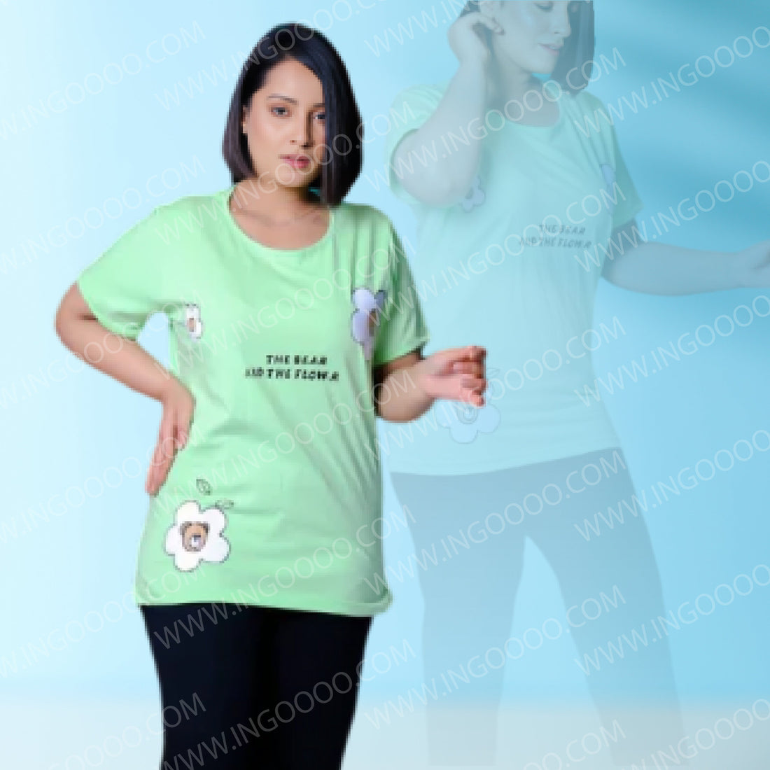 The Bear And The Flower Green Ladies Nightsuit Night Suits for Women very attractive and...