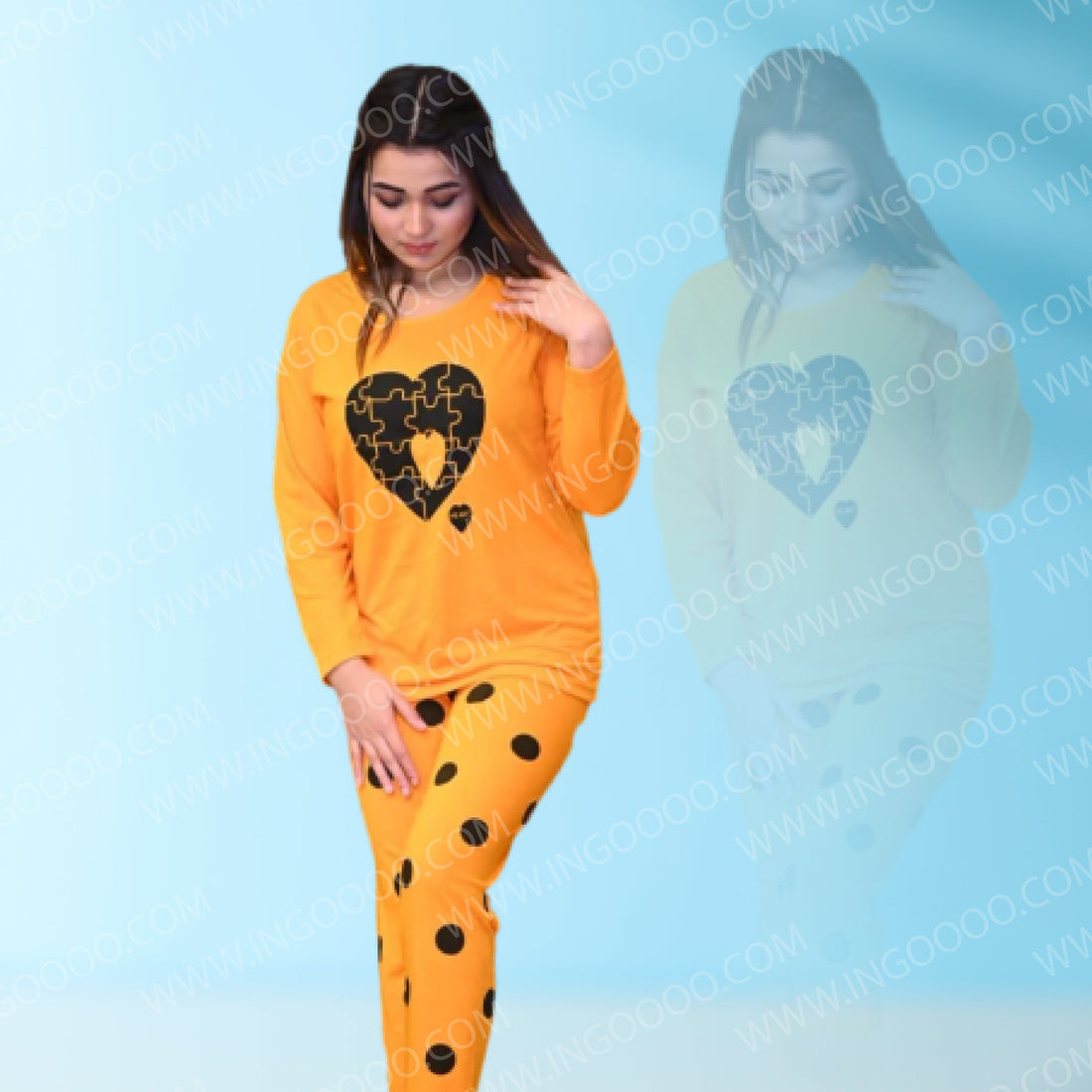 Yellow Heart Puzzle Ladies Nightsuit Night Suits for Women very attractive and trendy design Blended...