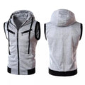 Grey Sleeveless Hooded Zipper Sport Gym Warm