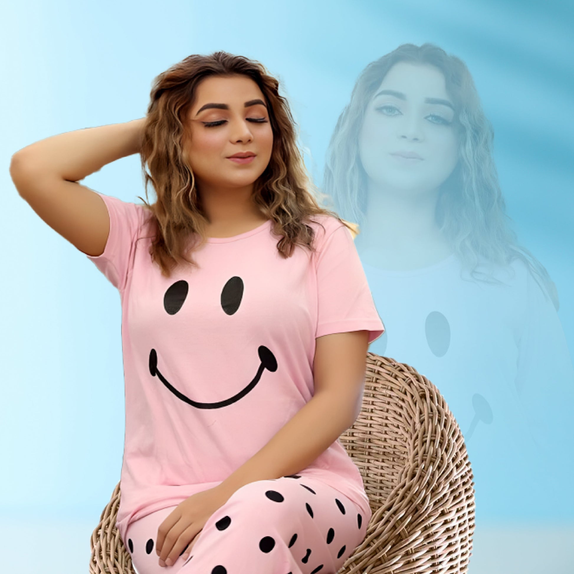 Pink Smile Printed Women Nightsuit