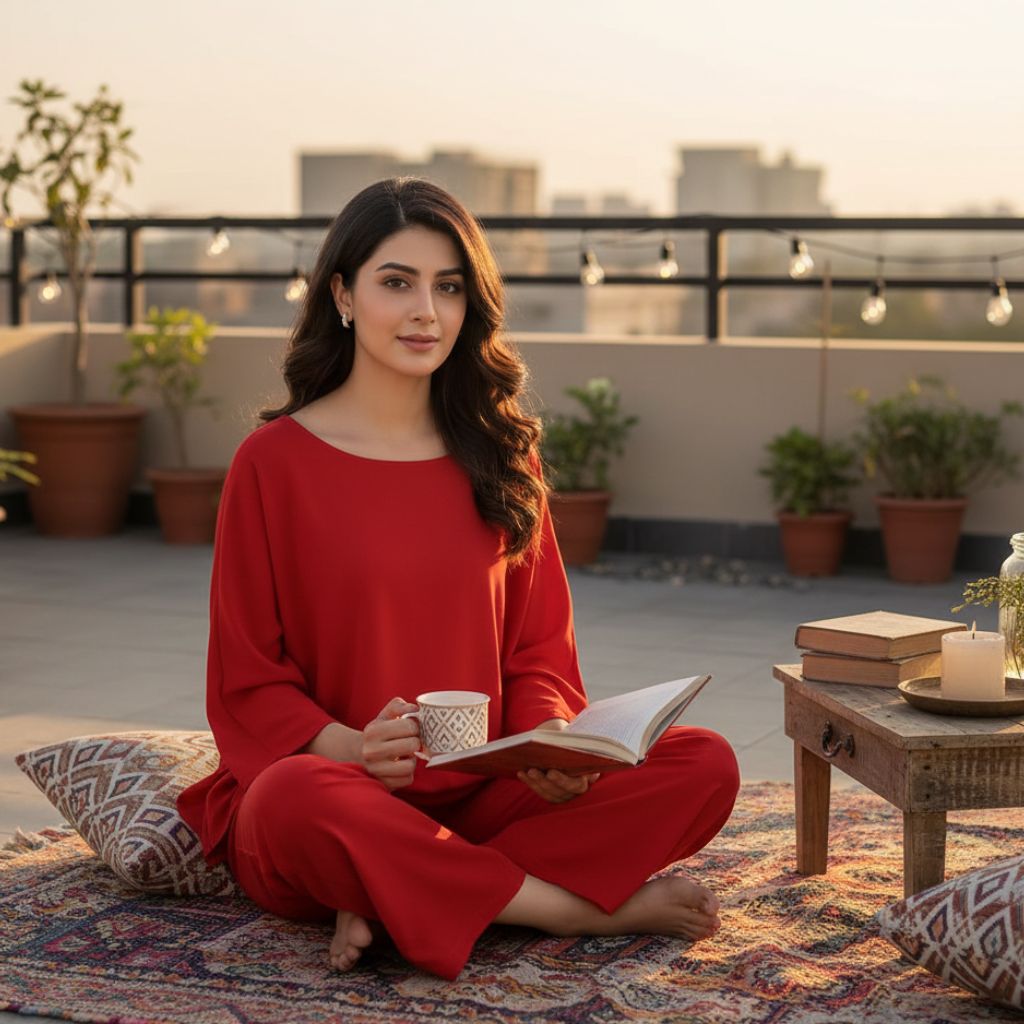 Red Lounge Wear For Women PJ Set ARTICLE NO# 52